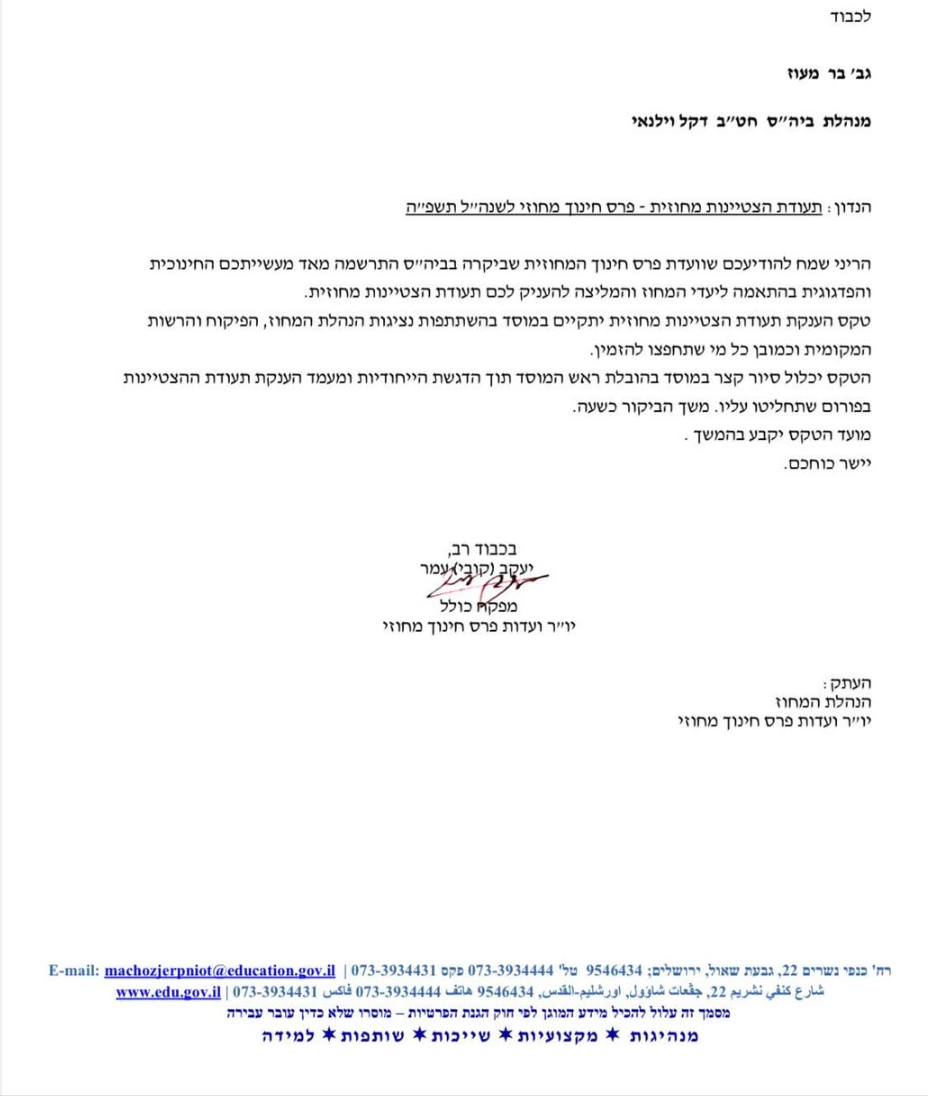 רב תחומי עמל דקל וילנאי מעלה אדומים חטב/פוטו דקל/תעודת הצטיינות מחוזית – פרס חינוך מחוזי – 2025 תעודת הצטיינות מחוזית – פרס חינוך מחוזי – 2025